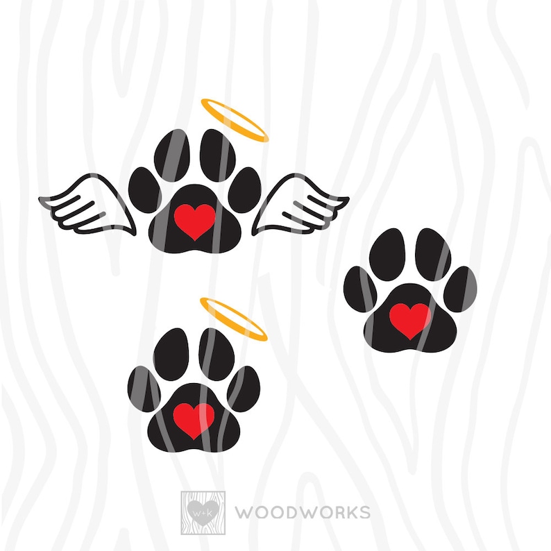 Description Instant Download SVG / DXF - 3 Pack: Memorial Angel Pet Paw Print (Design 3), Cricut, printing, decal, sticker, sublimation, Shirt, Trending