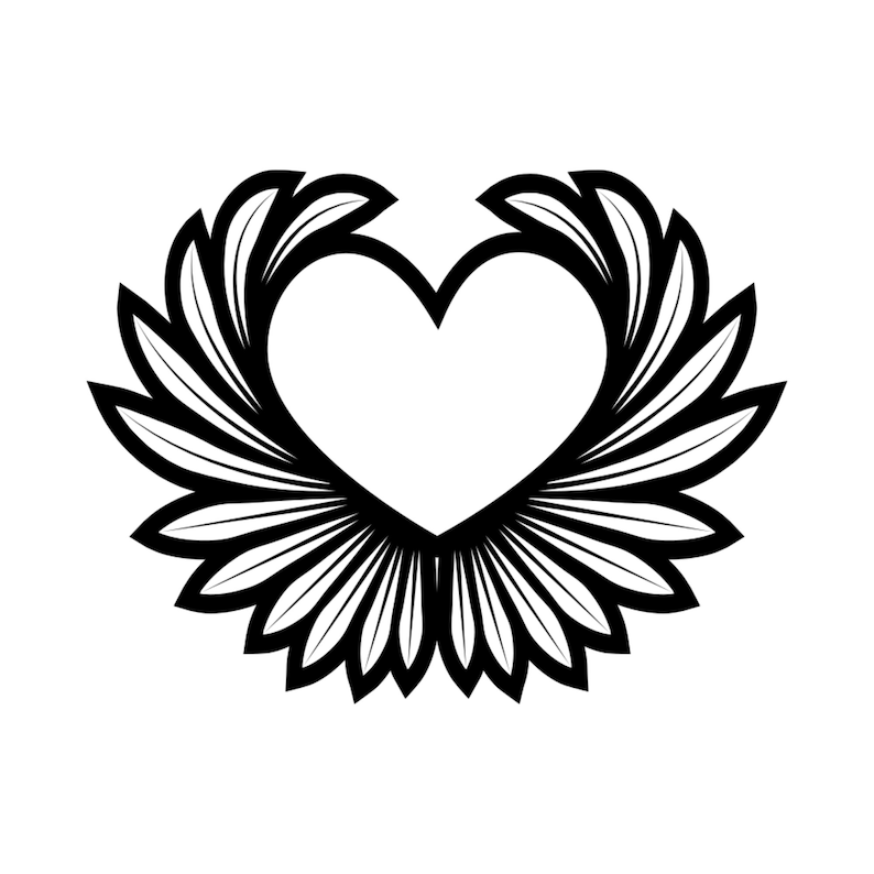 Description Instant Download Black And White Angel Wings Heart SVG Clipart, Cricut, printing, decal, sticker, sublimation, Shirt, Trending