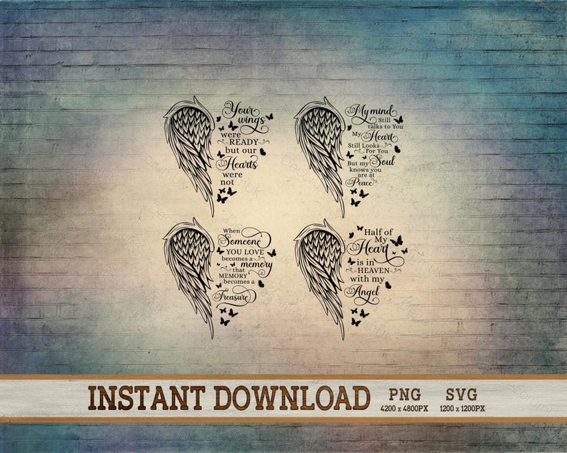 Description Instant Download In Loving Memory Heart Angel Wings Svg Bundle, Cricut, printing, decal, sticker, sublimation, Shirt, Trending
