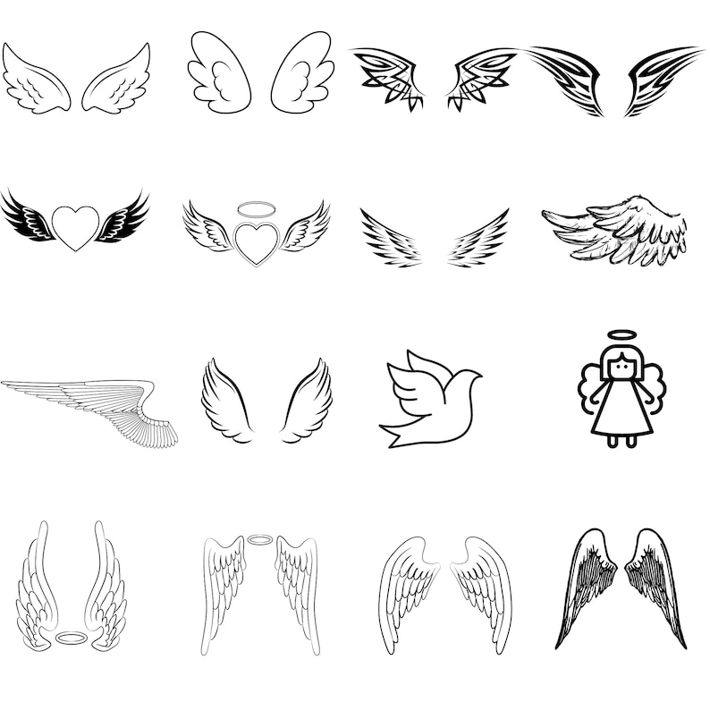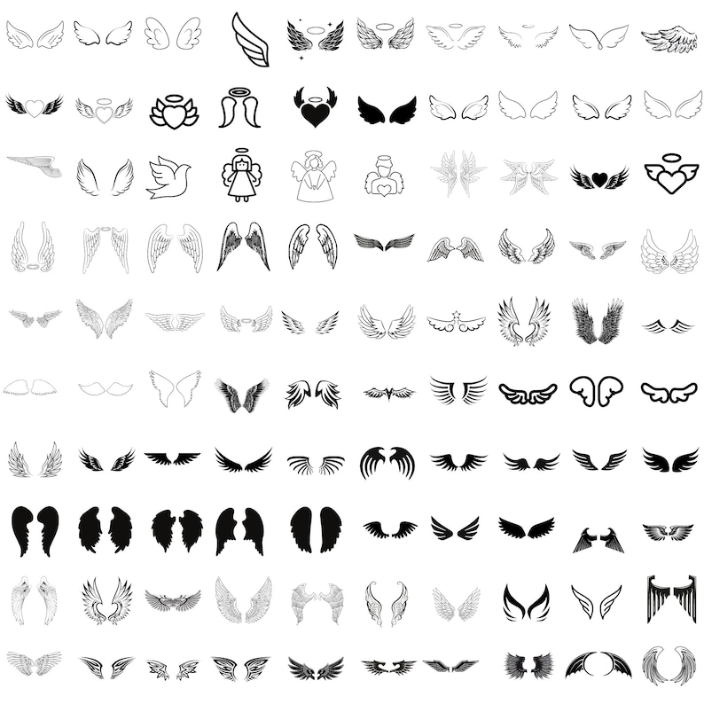 Description Instant Download 100 Angel Wings SVG Bundle Angel Wings Sketch Transparent Background, Cricut, printing, decal, sticker, sublimation, Shirt, Trending